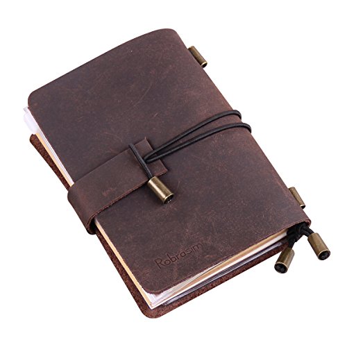Robrasim Handmade Traveler's Notebook - Journal Sketchbook - Vintage Refillable Leather Notebook - Pocket Size 13x10cm - Coffee