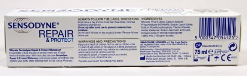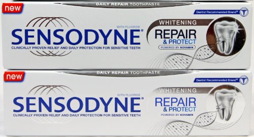-. Binding : Health and Beauty -. Brand : Whitening -. EAN : 5000347054525 -. Feature : Helps Protect teeth against Acid Erosion. Great Taste Keeps Mouth Feeling Fresh & Clean / Restore them to their natural whiteness. Specially formulated for People with Sensitive Teeth / Clinically proven relief and daily protection for sensitive teeth / One tube capacity is 75ml / You will get 2 toothpaste tubes. -. Label : Sensodyne -. LegalDisclaimer : _/\_Thank you for your order. (Guarantee 100% Genuine Product / World Wide Shipping /Ships from and sold by Variety ETC.) -. Manufacturer : Sensodyne -. PackageQuantity : 2 -. ProductGroup : Beauty -. ProductTypeName : HEALTH_PERSONAL_CARE -. Publisher : Sensodyne -. Studio : Sensodyne -. Title : Sensodyne Repair and Protect Whitening Toothpaste [Pack of 2]