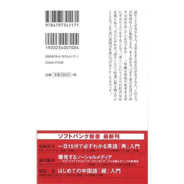 【商品説明】 定価(税込み):756円 値引き:5% OFF どんな職種でも欠かせない「書く力」と「話す力」。この2つの根本は1つ。どちらも、まとめる力、つまり要点を見つけ出す力なのである--。ワークシート等を使用して、実際に自分で書き、話すことで表現力を伸ばす、ビジネスマン必見のトレーニングブック。 バーゲンブック 新品 特価 格安 ビジネス 経済 スキル ブック トレーニング ソフト | |