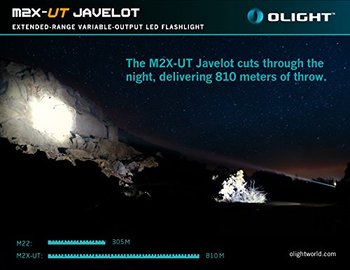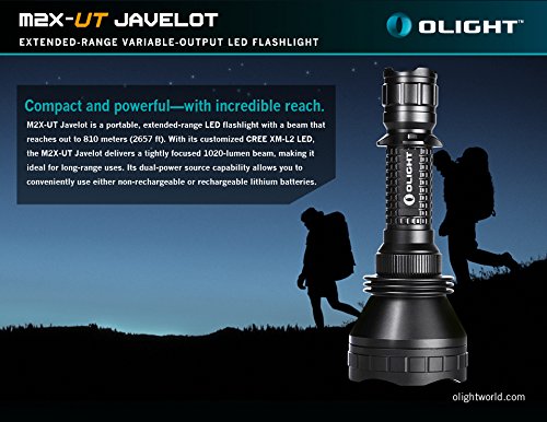 Olight M2X-UT Javelot 1020 Lumens CREE XM-L2 LED Flashlight 810m Long Throw Distance Search Light with Two 3400mAh 18650 Batteries and Charger Kit