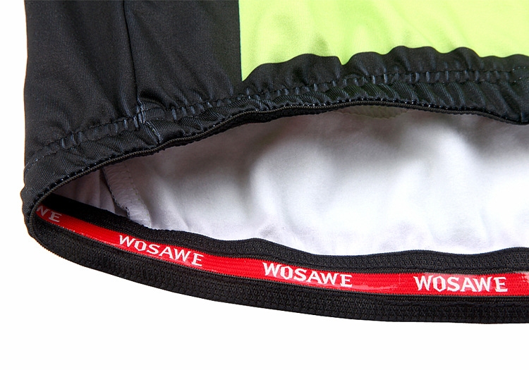 Silicone Hem: WOSAWE logo silicone band, can provent skin allergy and the cloth upglide during riding very well.