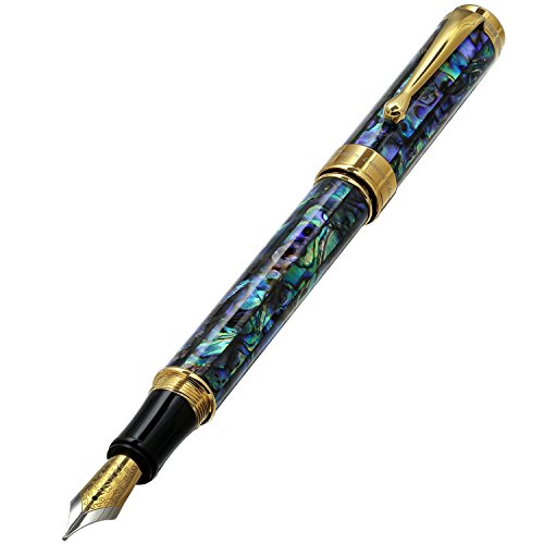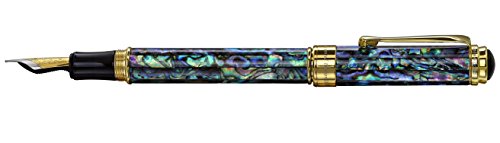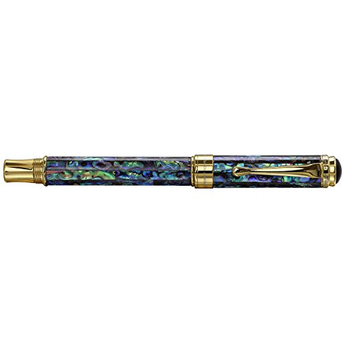 -. Feature : Solid brass barrel and cap with inlay of natural Sea Shell (Abalone). Sea Shell is a natural material; therefore, some distinctions in the texture of the Sea Shell (Abalone) material may occur. / Distinctions and variations in texture of the natural materials are not defects, but rather natural attributes which add beauty and uniqueness to each of these handcrafted pens. The sea shell panels range from dark green to black, along with red or blue overtones. Please see all images and understand that colors of Sea Shell inlay may vary from pen to pen. There are no two pens alike / Supplied with gift box, (4) ink cartridges, cloth, ink converter, certificate and 3-year warranty card. German-made medium point stainless steel nib. Ink refill is standard European (international) size cartridge and is selectively interchangeable with a variety of commercially available fountain ink refills including montblanc, parker, cross, waterman, schmidt, sheaffer, s.t. dupont, Visconti, pelikan, dunhill, delta, krone, omas, ancora and . / Screw-on cap. 18-karat gold plated brass fittings. Limited edition of 500 pieces. Each pen is individually numbered. / Diameter: 12 mm, Length posted: 170 mm, Length capped: 145 mm; Weight: 40 grams/1.4 oz.