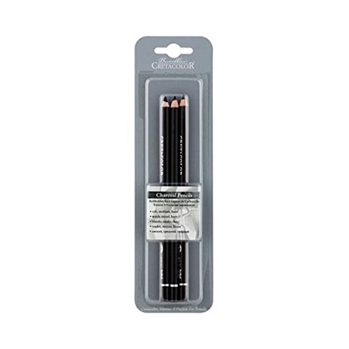 Cretacolor Charcoal Pencil 3Pk Sft Med Hard