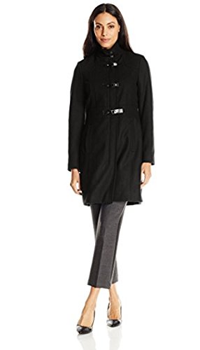 Kenneth Cole Women's Single Breasted Wool Coat with Buckle Closure