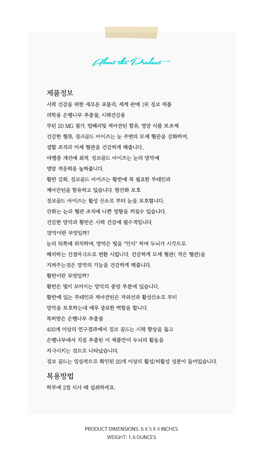 네이쳐스 웨이, 징코골드 아이즈, 눈영양제 60정