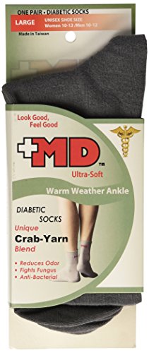 (MD USA)/Health Care/Diabetes Care/DIRECT FROM USA/MD USA Crab Yarn-Summer Diabetic Ankle Socks, Gray, Large