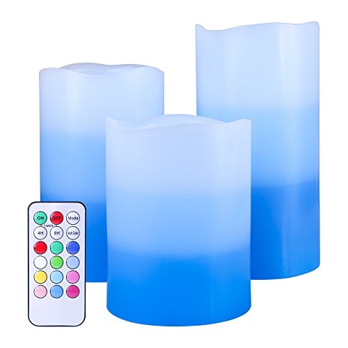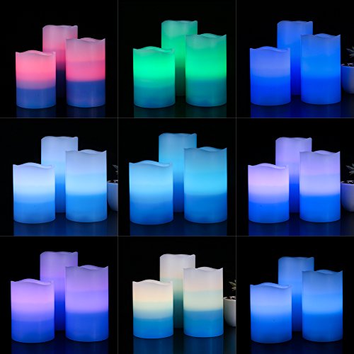 Set of 3 Flameless LED Candles Color Changing Flicker,Light Mode Option Tri-Layer LED Pillar Candle with Timer and 18-key Remote for for Wedding,Votive,Yoga and Decoration