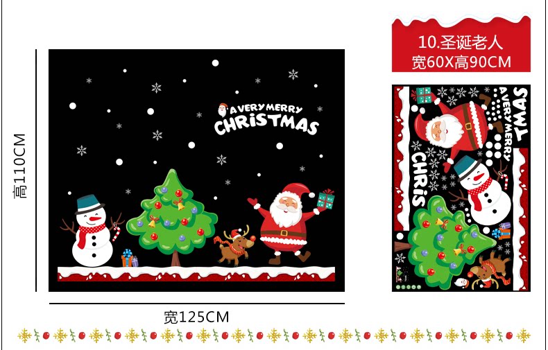 圣诞节玻璃贴纸商场店铺橱窗装饰品墙贴门贴雪花窗花布置贴花贴画