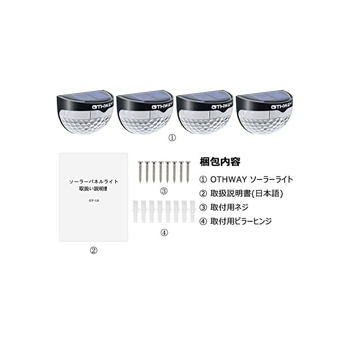 원본상품명: OTHWAY 6 LED ソラライト ガデンライト 屋外照明 太陽光充電 光キレイ 半球形 日本語取付き 二個同梱
