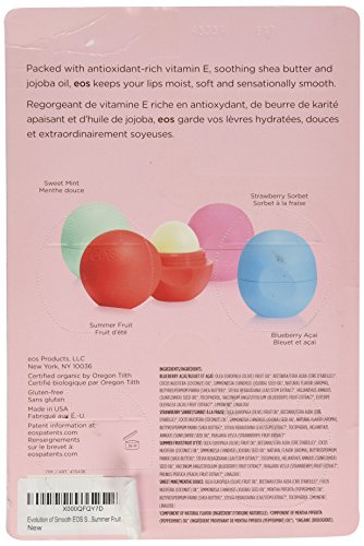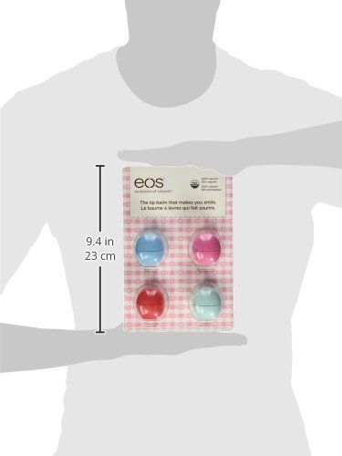Product Dimensions: 9 x 6 x 1 inches ; 4 ounces Shipping Weight: 4 ounces (View shipping rates and policies) Domestic Shipping: Currently, item can be shipped only within the U.S. and to APO/FPO addresses. For APO/FPO shipments, please check with the manufacturer regarding warranty and support issues. International Shipping: This item can be shipped to select countries outside of the U.S. Learn More ASIN: B00QKNAVF0 UPC: 832992010213 Item model number: EOS4PK Average Customer Review: 3.8 out of 5 stars 39 customer reviews Amazon Best Sellers Rank: #280,781 in Health & Household (See Top 100 in Health & Household) .zg_hrsr { margin: 0; padding: 0; list-style-type: none; }.zg_hrsr_item { margin: 0 0 0 10px; }.zg_hrsr_rank { display: inline-block; width: 80px; text-align: right; } #3433 in Health & Household > Personal Care > Lip Care > Lip Balms & Treatments #3433 in Health & Household > Personal Care > Lip Care > Lip Balms & Treatments