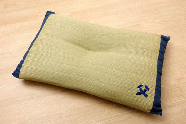 国産のイ草を使用したイ草枕です。より頭にフィットするよう、枕の中心部分に「くぼみ」をつくりました。快眠い草の効能として1.綿の約2.5倍の吸湿力 2.蒸れにくい。汗による湿気を吸うことにより温度を下げ快適な就寝を促します。 3.汗のにおいを軽減。汗のにおいの元となる化学物質を90%以上抑えます。などがあります。国産(九州産)のしなやかなイ草を使用していますので、柔らかく、すべすべしたとした肌触りです。中材には低反発ウレタンチップを使用しています。柔らかすぎずヘタリにくく、型崩れしにくいのが特長です。い草の表面に天然青森ヒバ加工を施しています(抗菌・防臭効果)。青森県のヒバの木から抽出した「ヒバ油」をメーカー独自の技術で材料や商品に加工しました。「ヒバ油」には、ヒノキチオールという天然物質としては極めて抗菌性の高い成分が含まれ、医療や食品など多分野で利用研究が進められています。