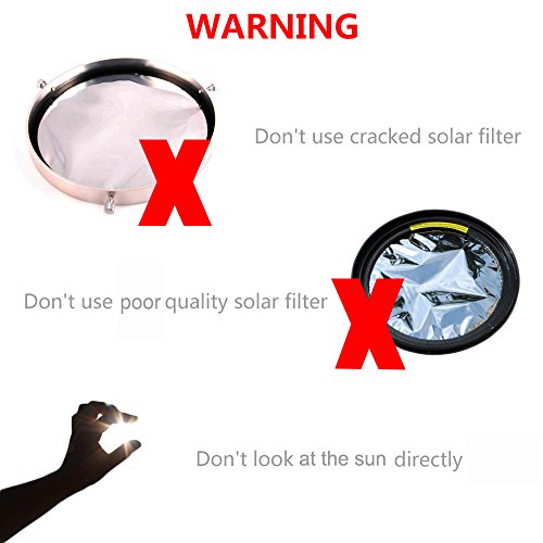 CAUTION: Never look at the Sun, either directly or through a telescope, without a professionally made protective solar filter installed that completely covers the front of the instrument, or permanent eye damage could result.