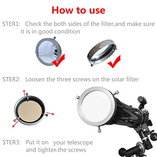 The Eclipse Solar Filter is for optics front end tube diameter from 66 to 95mm (2.61" - 3.70")! A must-have, white light filter for safely observing the sun and su nspots without damaging your eyes