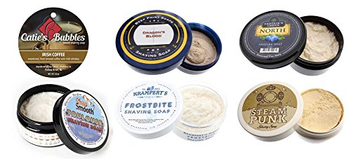 -. Feature : Sample Pack of 6 fantastic, unusual scents / Artisan made shaving soaps / Size: ½ Tbsp of each cream (enough for approximately 4 shaves)