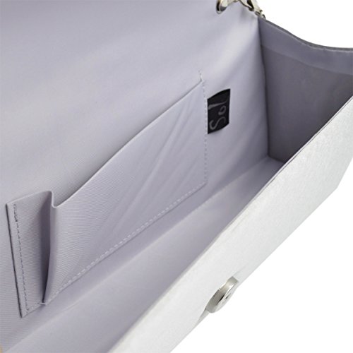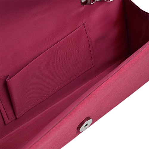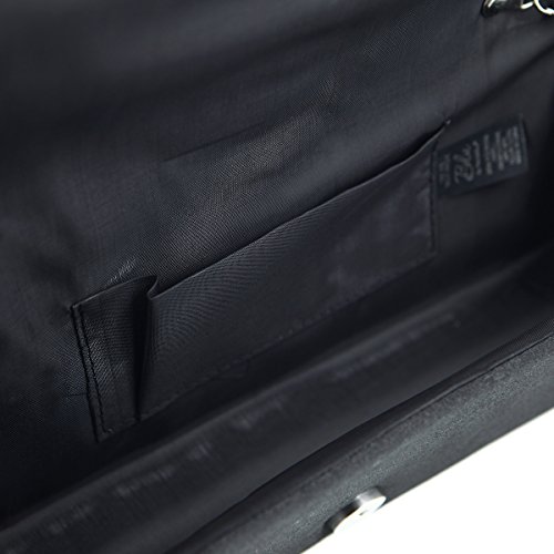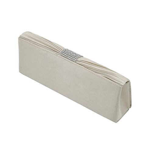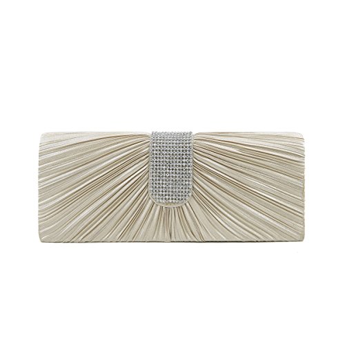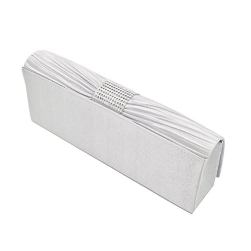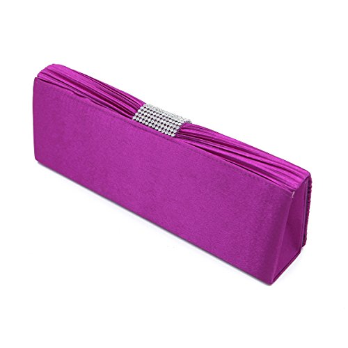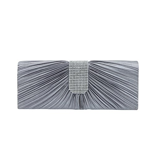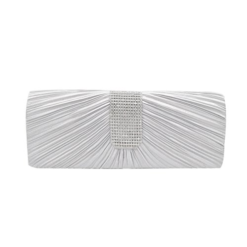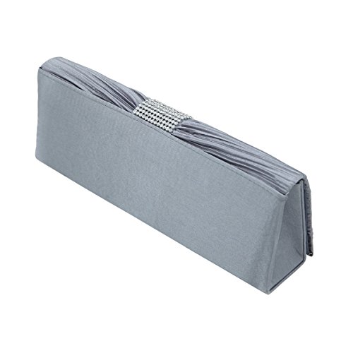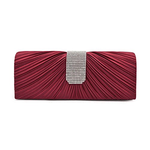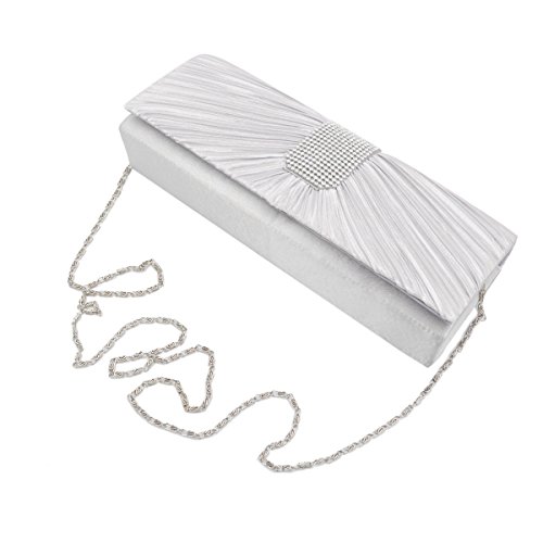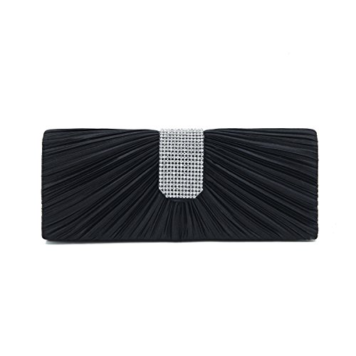 Product Description This premium quality evening clutch is both elegant and stylish. Pleated satin fabric front with chic sparkling crystal rhinestones. Classic and sophisticated. Fully lined with magnetic-flap closure and inner wall pocket. Removable hideaway shoulder chain strap with 21" drop. Stunning, functional and versatile. The size is 10.5" (L) x 4" (H) x 2.25" (W). Elegant design and luxury feel. A must have accessory for the perfect night out. 0