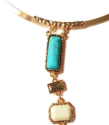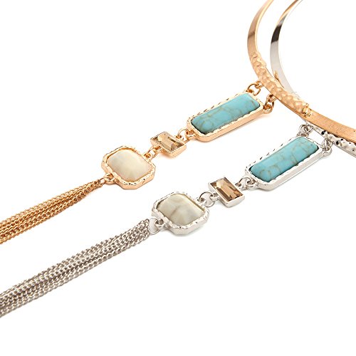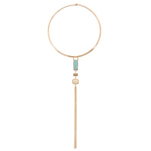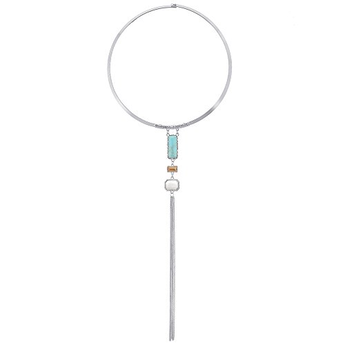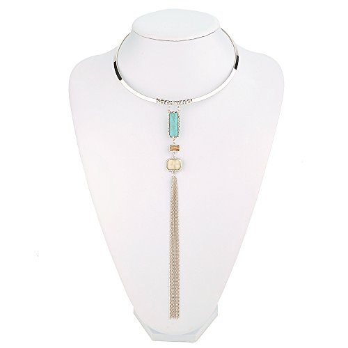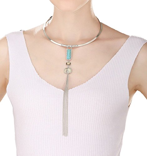 -. Title : Peony.T Women's Boho Long Tassels Collar Necklace Square Turquoise Jewelry