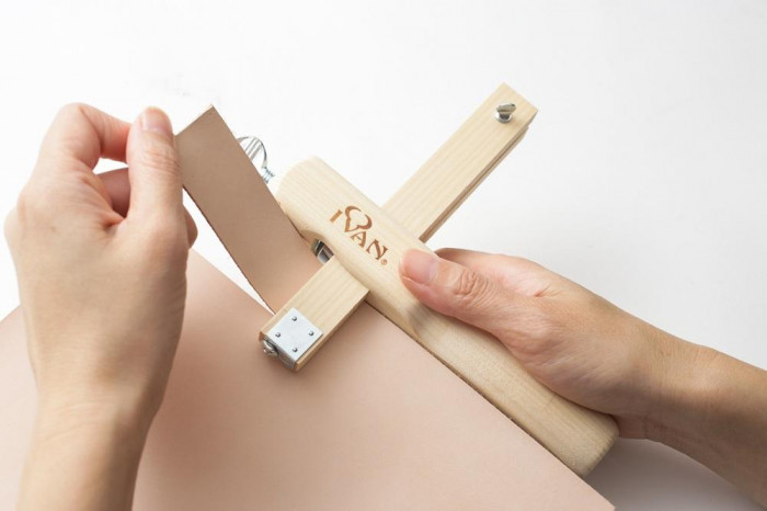 ベルトなどの均一で広い巾の裁断に適したカッターで、約100mm巾まで対応します。使用する革の厚みに合わせてアジャスターを調整し、確実な作業ができます。