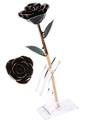 DuraRose Everlasting Long Stem "Black" Rose Dipped In 24k Gold WITH STAND & CARD – Romantic 'I Love You' Special Occasion Gift for Her on Valentine's Day, Anniversary, Birthday or Mother's Day (Black)