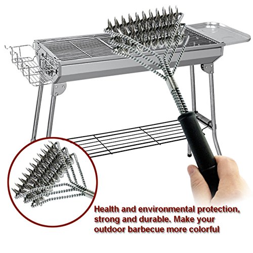 - Easy & Faster Cleaning: With a unique design, this 18" long barbecue brush has 3 brushes, each with its own equivalent stroke.Compare with the traditional cleaning brush, it can 5X Faster than The traditional. Be prepared to clean every bit of residue with its inovative 360 degree rotator.