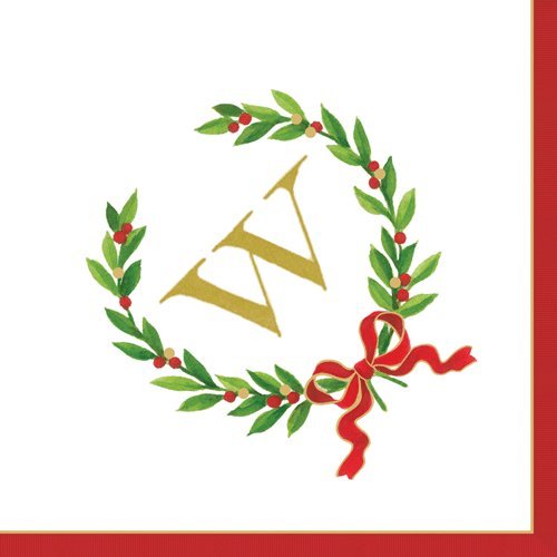 -. Title : Monogrammed Initials Cocktail Napkins Christmas Laurel Wreath