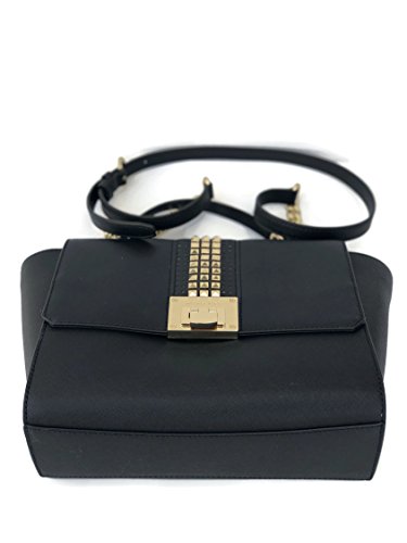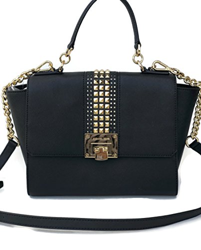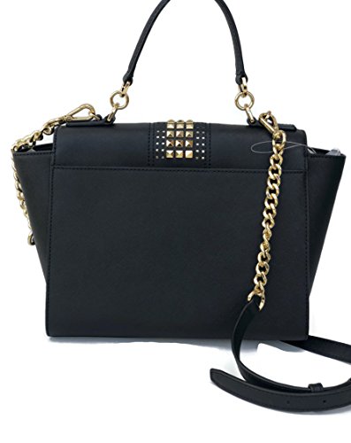 Michael Kors Tina Medium Studded Leather Chain Satchel Crossbody Bag Purse Black