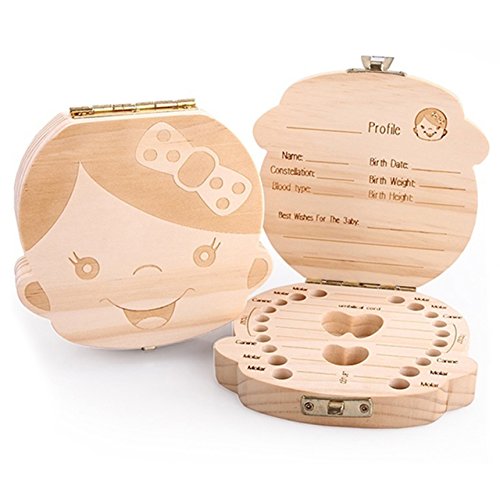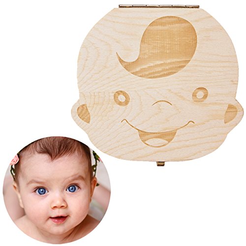 Baby Teeth Box, WarmHut Pinewood Wood Memory Teeth Box for Kids, Tooth Storage Box Souvenir Cute Gift for Newborn Baby Boy Girl Kids, Name...