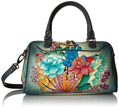 Anuschka Anna by Anuschka Handpainted Leather Zip Around Satchel,Succulent Dreams