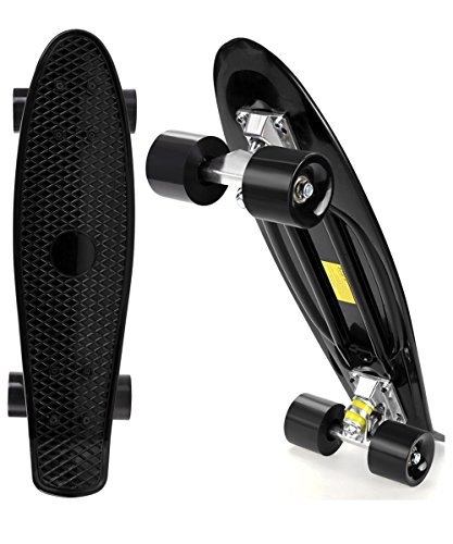 -. Feature : ☆Details:⊙Durable Deck:22" L x 6" W bendable non-slip shock resistant polypropylene deck, with a kicktail and powder coated aluminum, high density criss-cross plastic, hanger length 3.25". Max supporting weight 220 lbs(100kg); ⊙Bearings: PU suspension ring, state-of-the-art ABEC-7 high speed stainless steel bearings, fast spin without noise; ⊙Wheels: smooth durable 58mm big 82A PU wheels, high elasticity, reduce vibration and make a smoother glide, twists and tricks. / ☆Compact Size: this lightweight knock-around cruiser can be put in a backpack and you can even carry it on the air plane. Great for beginners or advanced rider skating street, skate parks, ramps, pools, and other smooth surfaces or even rough ground. / ☆Fun: the mini longboard cruiser specializes in quick, tight turns, support your skateboarding in all kinds of pavement--street, skate parks, ramps, pools, other smooth surfaces other smooth surfaces or U shape ground, etc... / ☆No assembly required, ship directly from US warehouse;100% refund without any hesitation, if you are satisfied with it. / ☆The solid californian cruiser skateboards in trendy retro vintage style is the coolest thing to hit the street, bring you back to 70's with its retro look and super cool styling. Great gift for kids, teens and small size adult.