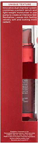 Innovative dual chamber system combines a potent serum and light-weight moisturizer in one pump to create an Intensive Skin Revitalizer, a perfect merge of two highly concentrated formulas for our fastest-acting power dose: SERUM Potent anti-aging serum with 6% PRO-XYLANE^TM made of Birchwood extract to firm the skin. MOISTURIZER: Light-weight moisturizer fueled by a stabilized form of 2% VITAMIN C, a powerful antioxidant. SEE VISIBLE RESULTS: Day 1Skin is revitalized with moisture. Feels softer, smoother and more supple. Day 2Skin feels noticeably firmer and looks more elastic. Day 3Skin texture is resurfaced for visible radiance, luminosity. In 1 week Fine lines and wrinkles appear noticeably smoothed. -Dermatologist tested for safety. Suitable for all skin types, even sensitive skin.Feature