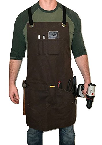 Armor Gear Heavy Duty Waxed Canvas Tool Apron with Tool Pockets and Adjustable Straps for Men & Women
