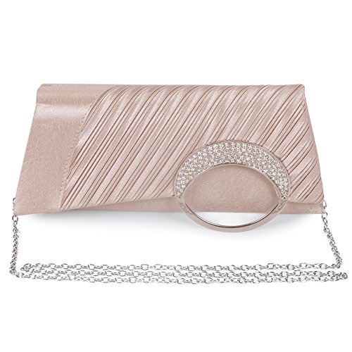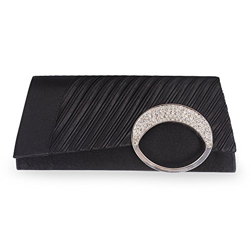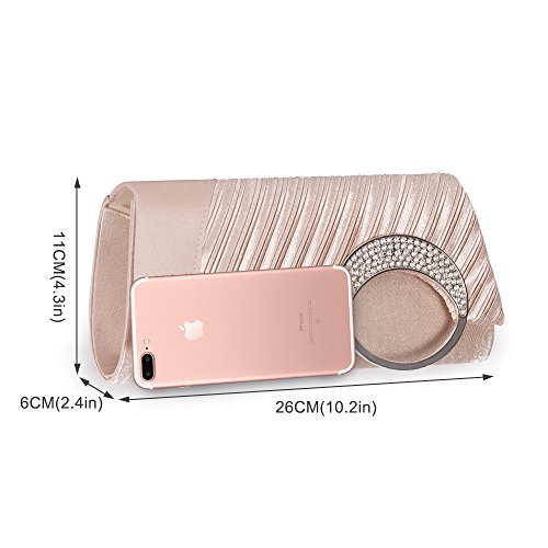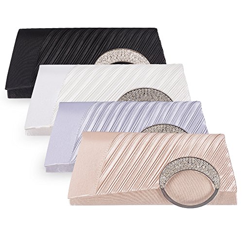 Emour Brand new satin pleated evening wedding prom bridal clutch handbag, a gorgeous bag ,which is made from soft satin with pleated and embellished with rhinestone. It is suitable for all ages to attending any party or occasion. Satin covered and Satin lined ,the bag is covered and lined with stain, so it looks more elegant. Designers of fancy bag would like their customers to believe that wearing their creations lends an air of wealth, sophistication and high status. It also a 3 style in 1 bag (shoulder, clutch, and purse) handbag, three kind of usage is entirely up to you.Feature