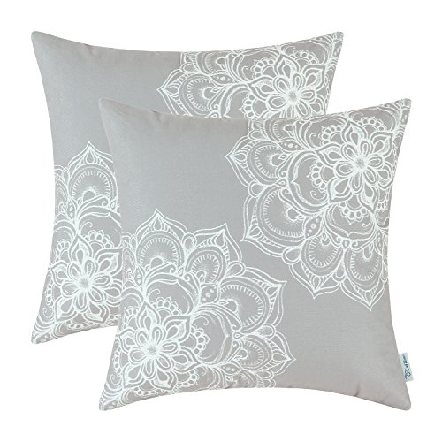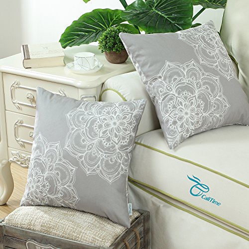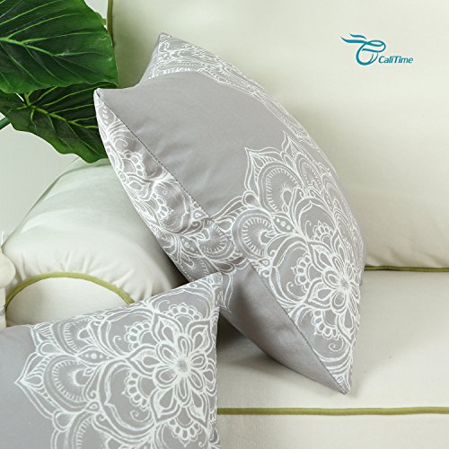 Pack of 2 Euphoria CaliTime Throw Pillow Covers 18 X 18 Inches, Vintage Dahlia Floral, Gray