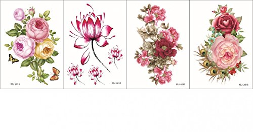 Wonbeauty with fashionable design4pcs in one package,it including 4pcs colorful flowers,roses,peony and lotus fake realistic tattoo stickers