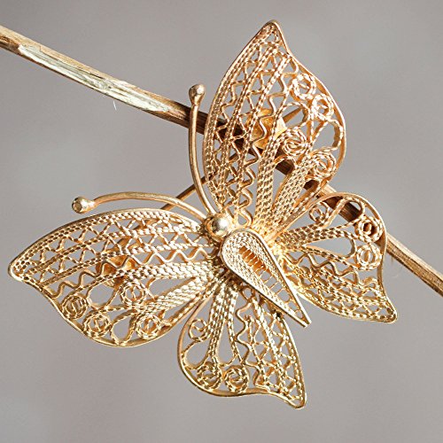 -. Binding : Jewelry -. Brand : NOVICA -. Department : womens -. Feature : An original NOVICA fair trade product in association with National Geographic. / Includes an official NOVICA Story Card certifying quality & authenticity. / NOVICA works with Giuliana Valz-Gen to craft this item. / Includes an original NOVICA jewelry pouch to keep for yourself or give as a gift. / A keepsake treasure designed to be loved for years to come. -. Label : NOVICA -. Manufacturer : NOVICA -. MPN : 247742 -. PackageQuantity : 1 -. PartNumber : 247742 -. ProductGroup : Jewelry -. ProductTypeName : FINEOTHER -. Publisher : NOVICA -. Studio : NOVICA -. Title : NOVICA 21k Yellow Gold Plated .925 Sterling Silver Brooch 'Catacos Butterfly'