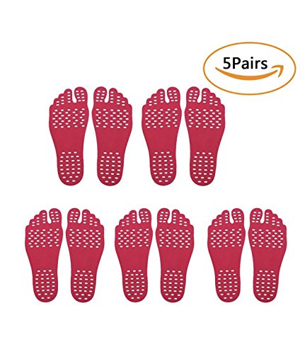 Adhesive Shoe, Barefoot Shoes, Nakefit stick on foot soles, Anti-slip, Waterproof design, Happy Feet by Turtleshell (Medium, Red-5)