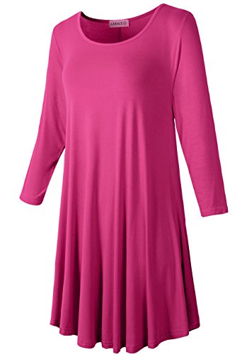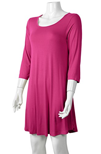 Smooth stretch fabric, crew neck, 3/4 sleeves, swing cut.