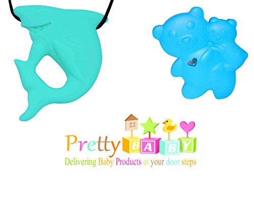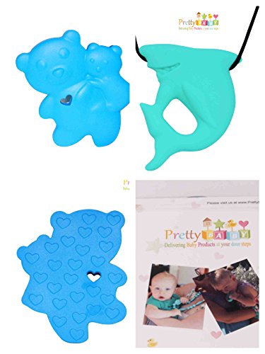 - TWO PIECE PACKAGING: Our Gift Pack ready Baby Teether comes with One Soft Chewy Baby Bear Teethers and one Baby Teething Necklace in Shark Shape.