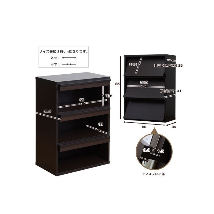 원본상품명: ワイエムワ?ルド 3枚フラップ キャビネット 組合せ自在 ディスプレイラック 6Beeシリ?ズ