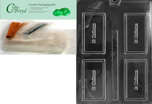 Cybrtrayd "No.1 Mailman" Business Card Chocolate Candy Mold with Packaging Bundle of 50 Cello Bags, 25 Gold/25 Silver Twist Ties and Chocolate Molding Instructions
