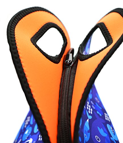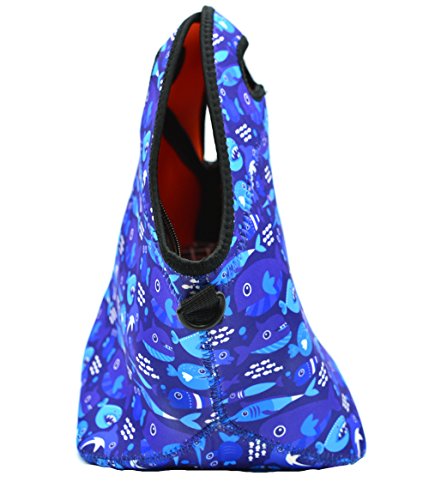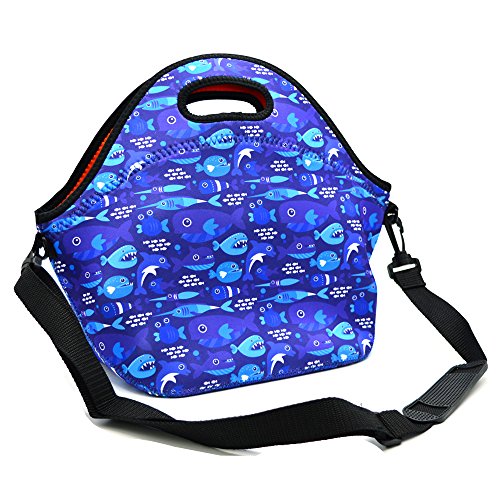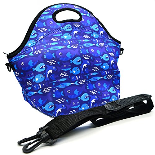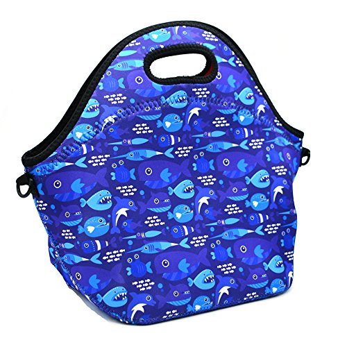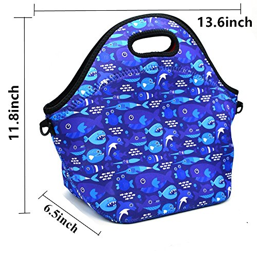 Neoprene Lunch Tote ,Insulated Waterproof Lunch Bags For Men, Women, Adults, Kids, Girls. Reusable, Washable, Water-proof Foldable, Light, Zipper (BLUE SHARK)