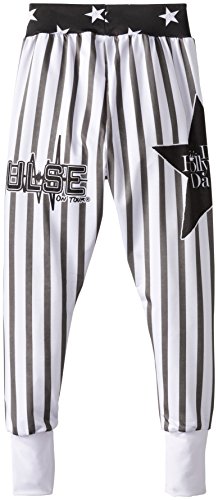 Relaxed-fit dance pants in vertical stripe with banded star-print waist and wide banded cuffs
