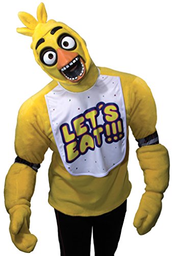 -. Binding : Apparel -. Brand : Rubie's -. ClothingSize : One Size -. Color : multi-colored -. Department : mens -. Feature : Plush costume top, mitts and mask / Important- costume sizing is different than apparel, consult the Rubie's men's size chart before making a selection / Wear with your own pants/skirt / Officially licensed five nights at Freddy's costume, buy with confidence from amazon, a trademark of Scott games / Five nights at Freddy's collection includes costumes, accessories and masks inspired by the games -. Label : Rubies Costumes - Apparel -. Manufacturer : Rubies Costumes - Apparel -. Model : 820253 -. MPN : R820253AD -. NumberOfItems : 1 -. PackageQuantity : 1 -. PartNumber : R820253AD -. ProductGroup : Apparel -. ProductTypeName : ADULT_COSTUME -. Publisher : Rubies Costumes - Apparel -. Size : One Size -. Studio : Rubies Costumes - Apparel -. Title : Rubie's Men's Five Nights At Freddy's Chica Costume