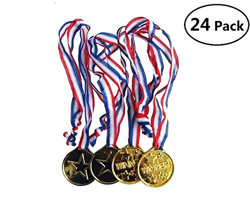 -. Title : EBTOYS Gold Medals Olympic Style Winner Award Medals with Ribbon for Party Favors,24-Pack (Golden)
