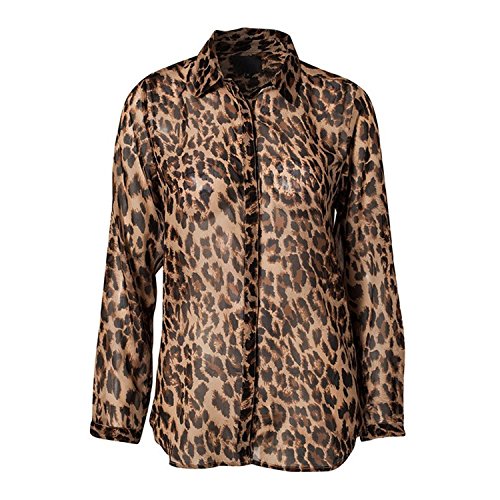 SODIAL(R)여성의 섹시인 시폰 셔츠 표범무늬 프린트 루즈하고 캐쥬얼한 블라우스 L