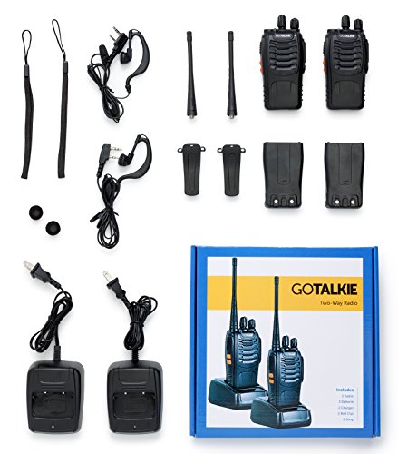 GoTalkie Two-Way Radios – 400-470MHz CTCSS/DCS Walkie Talkies – 2 FM Transceivers with Batteries, Chargers, Antennas, Belt Clips, Hand Straps & Earpieces – Great for Adults & Kids