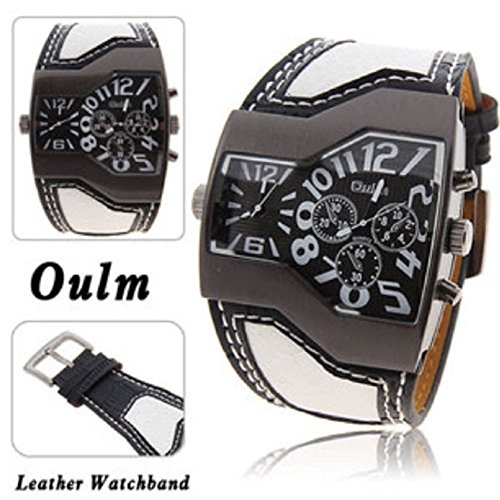 -. Binding : Watch -. Brand : LinTimes -. Color : color -. Department : Mens -. Feature : Imported, 100% brand new.Mens Unique Over-sized Dual Time Movt Quartz Wristwatch. / Watch Movement: Japan Quartz; High quality movement for accurate time-keeping. / Case Diameter: 2 x 1.8 inches/ 5.2 x 4.6 cm. Case Thickness: 0.39 inches/1cm . / The color will fits well with jeans or a business casual. / Dual Time Movement Design: Both "faces" are able to be set to tell time. It would be convenient for the people who need to know the time in another zone. -. Label : Oulm -. Manufacturer : Oulm -. MPN : 0H#WA0013 -. PartNumber : 0H#WA0013 -. ProductGroup : Watch -. ProductTypeName : WATCH -. Publisher : Oulm -. Studio : Oulm -. Title : Mens Military Sports Watch Army Dual Time Movt Quartz Wristwatch with Leather Band Decorative Sub-dials