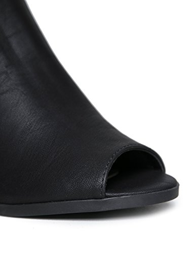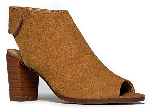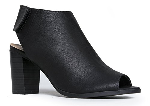 Product DescriptionThese chic peep toe heels are a need not a want! Vegan leather sandals have a back velcro strap and a stacked heel for an everyday, versatile style.0
