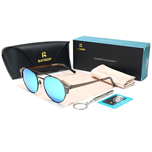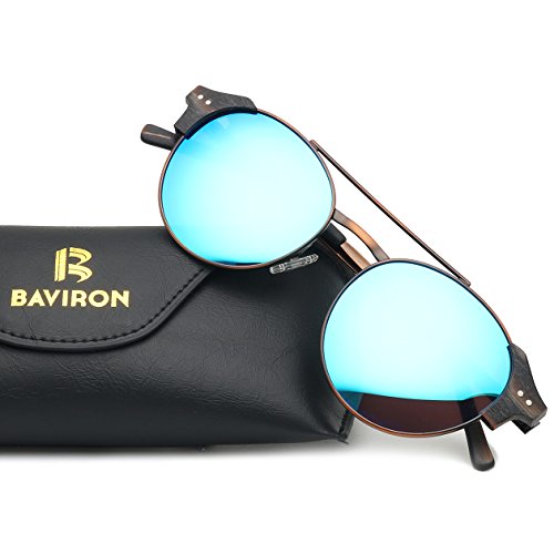 BAVIRON Round Wood Grain Rimless Sunglasses Polarized Double Bridge Eyewear