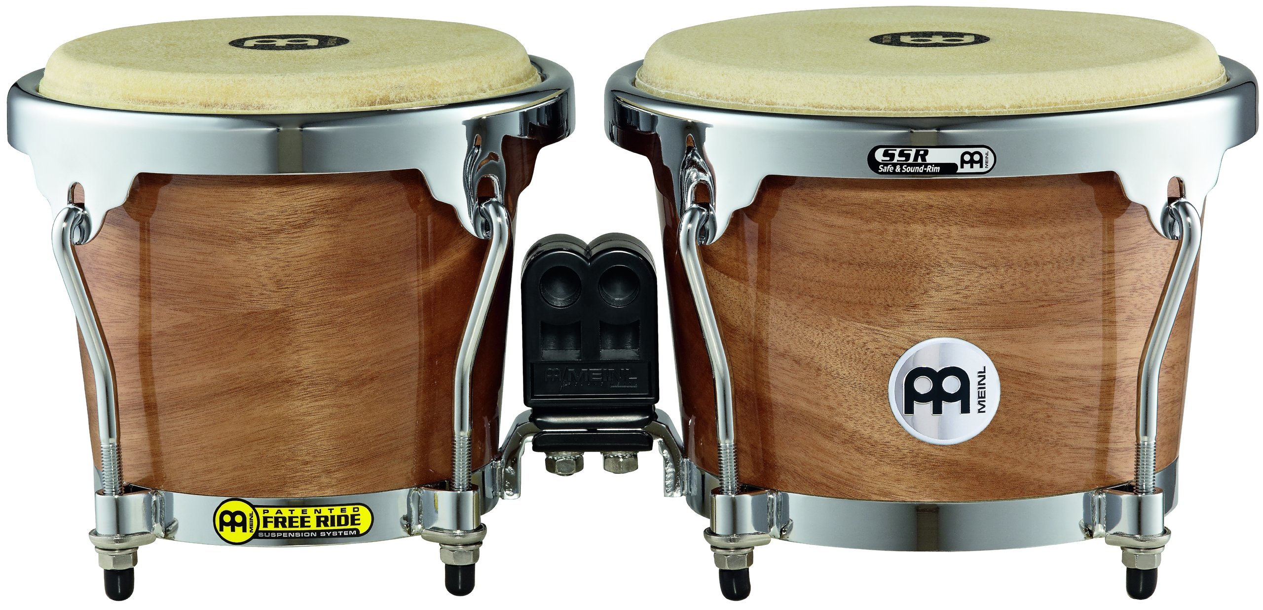 In addition, the two bongos are connected by MEINL's patented Free Ride system, without drilling holes in the shell.