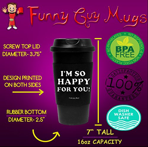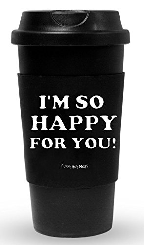 Funny Guy Mugs I'm So Happy For You Travel Tumbler With Removable Insulated Silicone Sleeve, Black, 16-Ounce